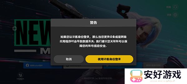2、这里以游客登陆为例,点击游客登陆后,在弹出的警告中点击使用访客身份登陆即可。