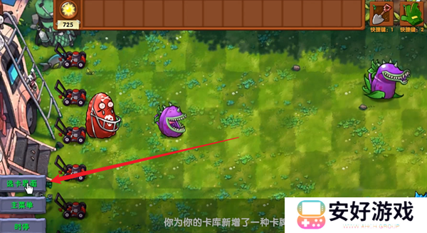 4、掉落的卡牌都将会出现在卡库里面,点击卡牌之后就能够将其加入搭配上面的植物栏里面。