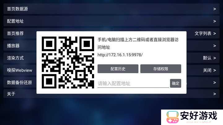 10.如果电视支持粘贴功能,可直接粘贴地址;否则可通过手机扫码配置,上传文件并选择本地包。