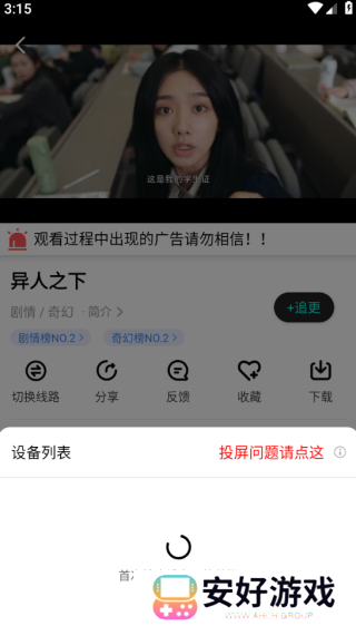 如果遇到电视机一直在加载的问题,请点击本应用中的“切换线路按钮”,切换播放源后重试即可