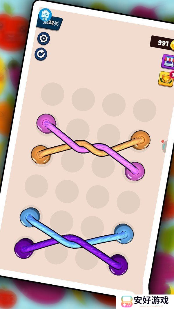 5. 挑战高分:完成关卡后,根据解开绳索的步数和用时,获得相应的评分,挑战更高分数。