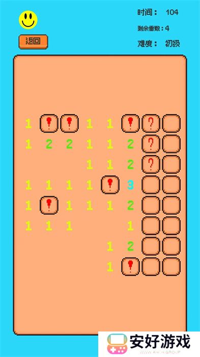 3. 丰富提示:主游玩场景包含重开、返回和三个显示当前模式的提示(游戏时间、难度和剩余雷数),帮助玩家更好地掌握游戏进度。
