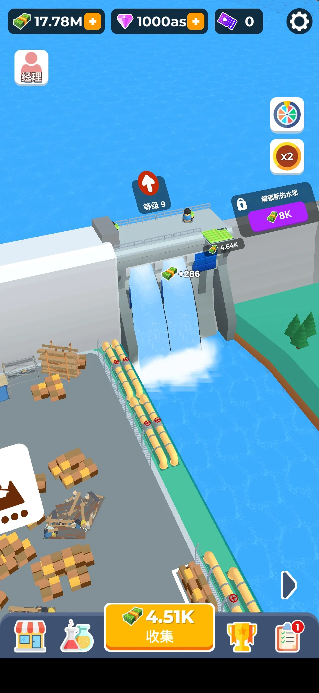 4. 丰富奖励:游戏中设有多种奖励机制,如完成任务、解锁成就等,玩家可以获得丰厚的金币、钻石等奖励,用于升级大坝和购买新设施。
