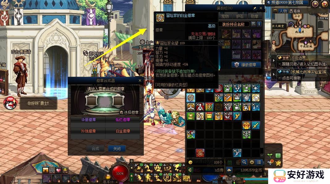 2、放入五个徽章,有几率合成冒险家的白金徽章。