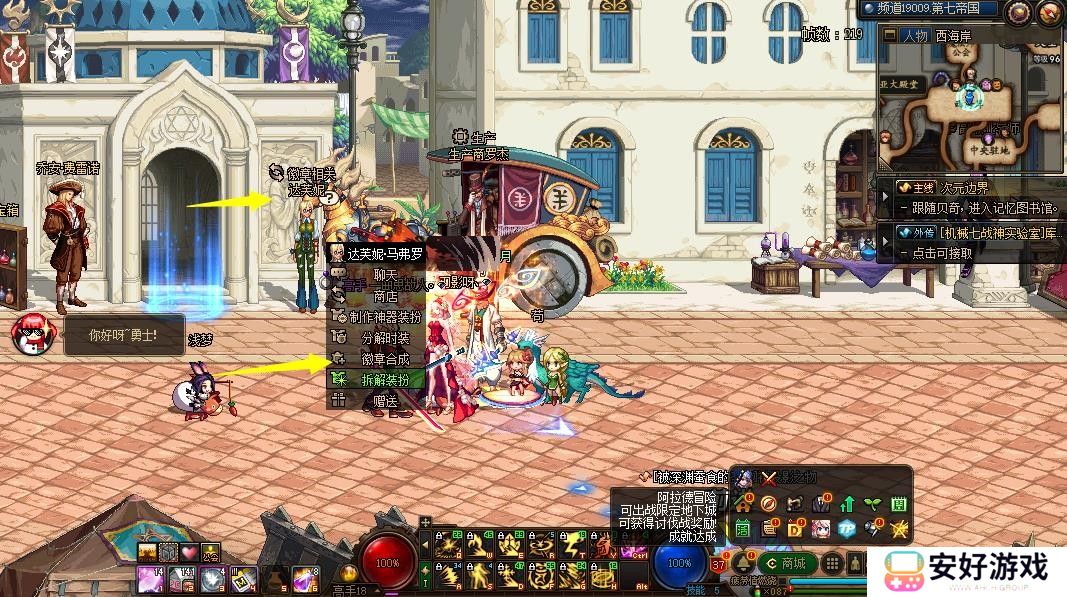 1、我们来到西海岸找到达芙妮,点击徽章合成。