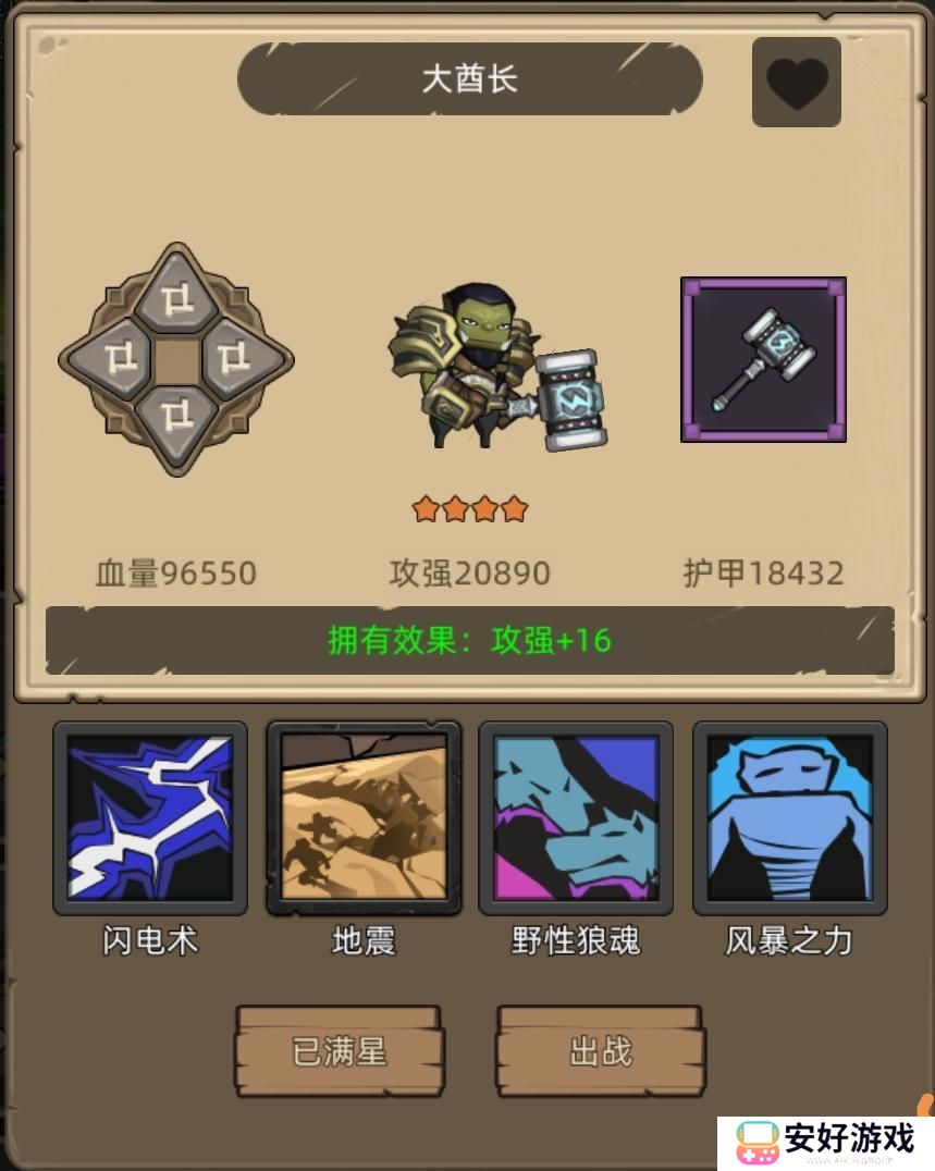 另一个可以带同一酒馆的黑暗化身,不过打断地狱火流星我不是很喜欢,可以换成控制更足的大酋长,四个技能三个控制,闪电术和风暴之力打断,地震群体减速,非常好用。