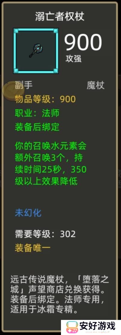 副手武器开200专精就带本命蓝武溺亡者权杖,这下一次可以召唤四个水元素了,不想没开200专精可以带传家宝腐败水滴,副本BOSS护甲越高收益越高,40%护甲削弱现版本看着还是很香。