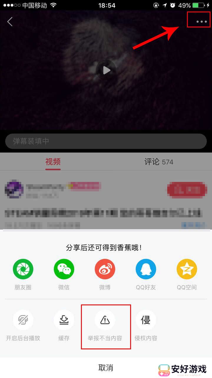 手机中打开软件,然后选择视频,你可以选择右上角【···】,可以看到举报不当内容的选择,点击后填写内容提交即可。