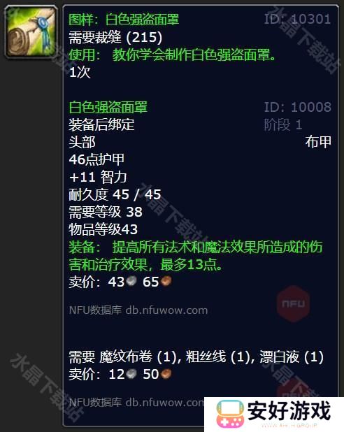 以上就是有关于魔兽世界白色强盗面罩图纸获取攻略的内容,更多内容请继续关注本站。