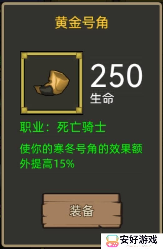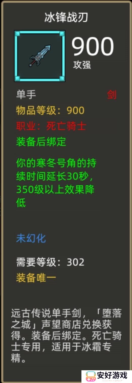 装备效果:你的寒冬号角的持续时间延长30秒,350级以上效果降低。