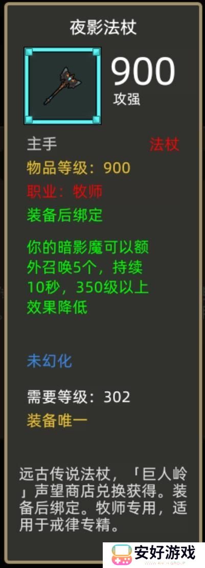 装备效果:你的暗影魔可以额外召唤5个,持续10秒,效果降低持续350级以上。