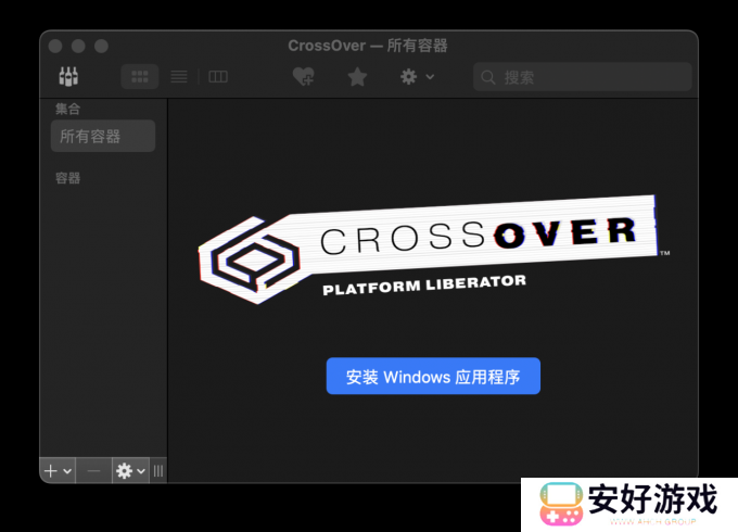 第 3 步:安装游戏。我们打开 CrossOver 软件,点击左上角的容器-新建容器,然后把刚刚下载的游戏安装包拖到容器里,游戏就会自动安装了。