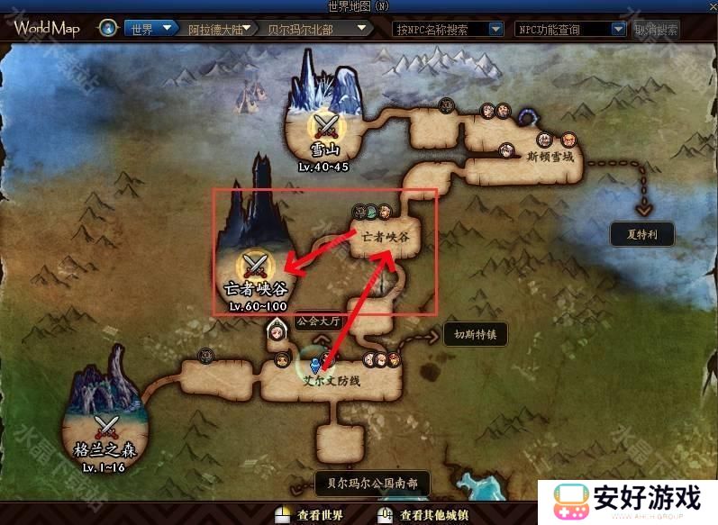 2、向上移动,即可到达亡者峡谷。