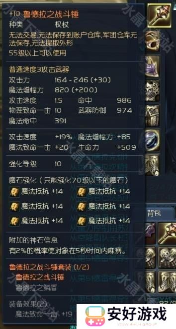 3、就算2防御装一套魔抗一套双抗,通过魔石搭配切换2个属性的时候,都可以用这个锤子。