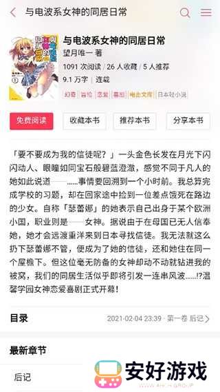 4、随便选中一本小说,是可以免费阅读、收藏、分享的;