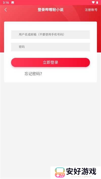 9、激活账号后,您可以使用注册时填写的手机号码或电子邮件地址以及设置的密码登录哔哩轻小说账号。