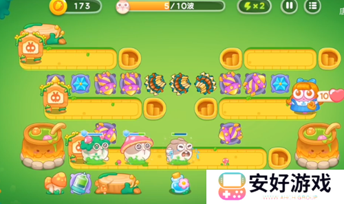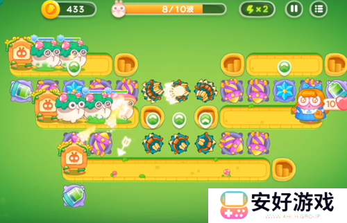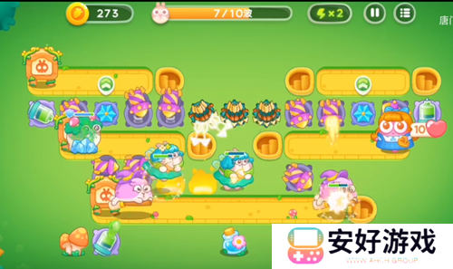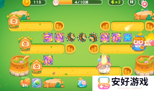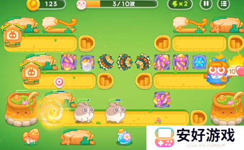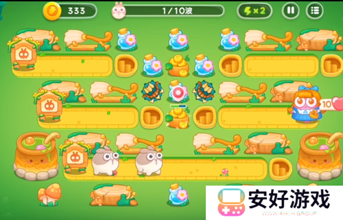 5、我们继续升级塔,升级后**塔攻击兔子。