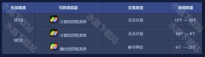 4、副本奖励分为基础奖励和阶段奖励,基础奖励固定为10个【分裂的四方龙息】。