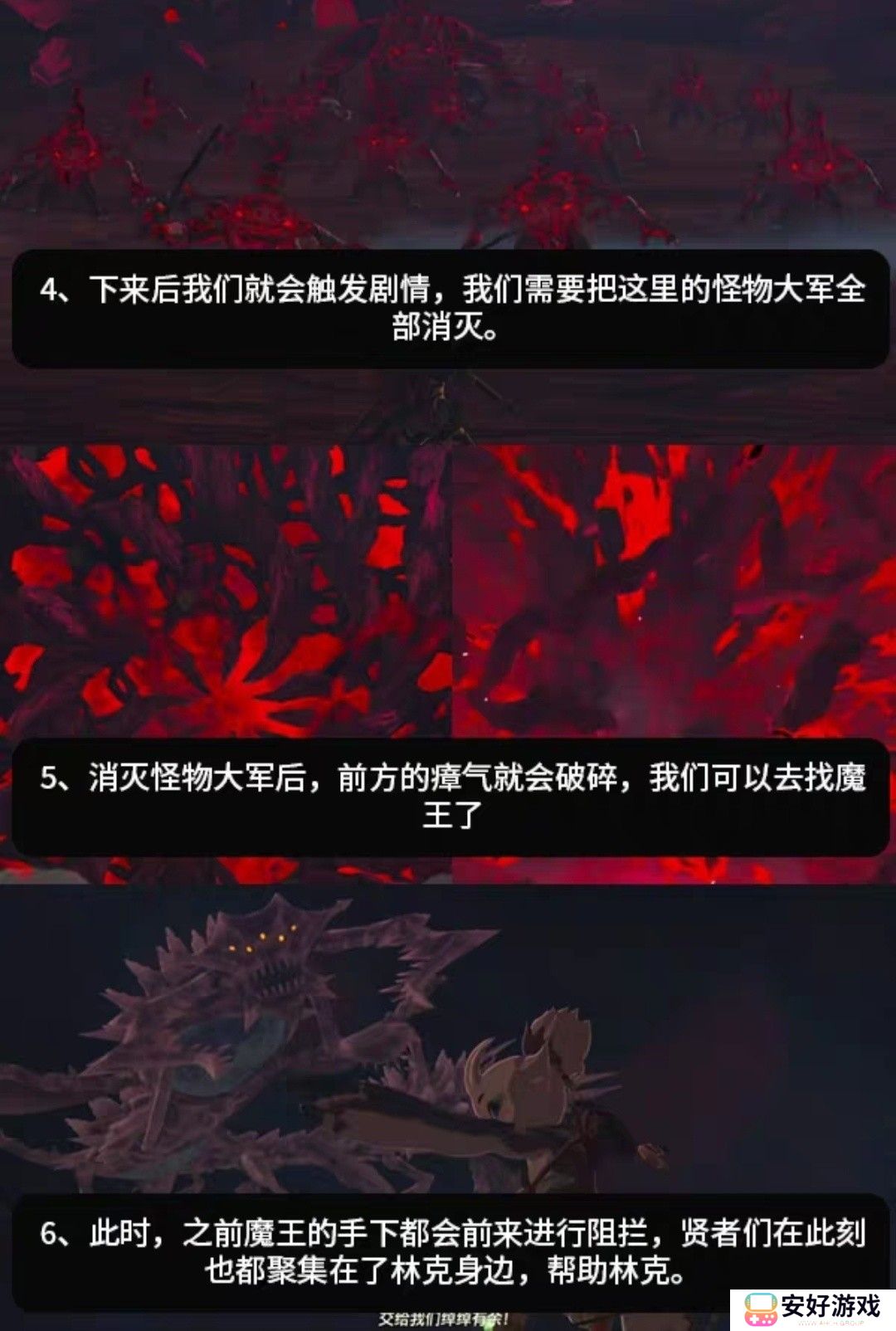 6、此时,之前魔王的手下都会前来进行阻拦,贤者们在此刻也都聚集在了林克身边,帮助林克。