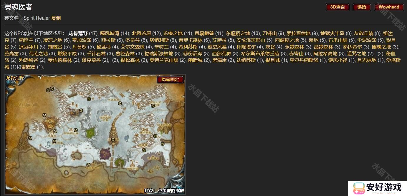 3、比如龙骨荒野、嚎风峡湾、北风苔原、贫瘠之地、东瘟疫之地就有数量比较多的灵魂医者。