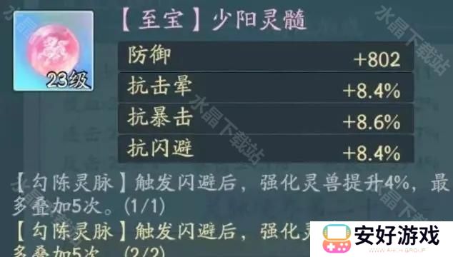 3、丹心同并:灵兽每次攻击后,为主角恢复生命值上限5%的生命,并增加10%的攻击力,持续2回合。