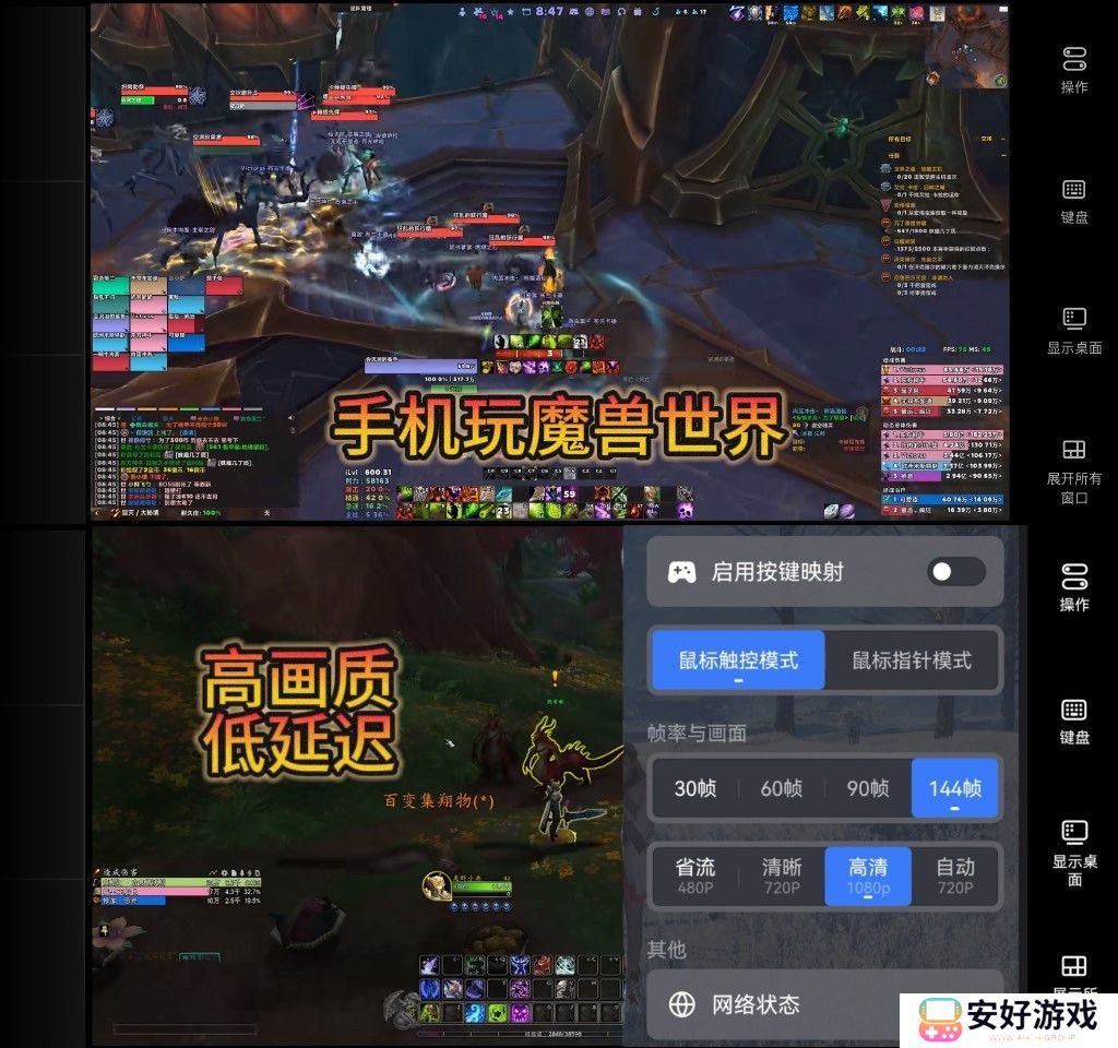 想要手机摸鱼玩魔兽世界?使用网易GameViewer远程就能让你随时随地玩魔兽世界!特配的游戏控制模式还有自带的操作方案,在手机也能畅快操作,还能享受4K蓝光144帧的高画质,百分百还原魔兽世界端游精彩的低延迟。