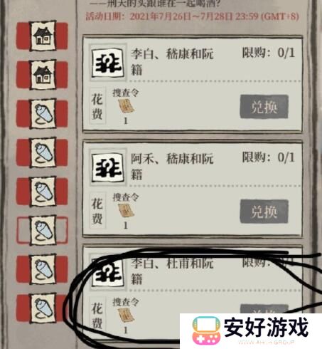 3、之后打开联动活动,根据线索选择李白、杜甫和阮籍,即可得到刑天的头。