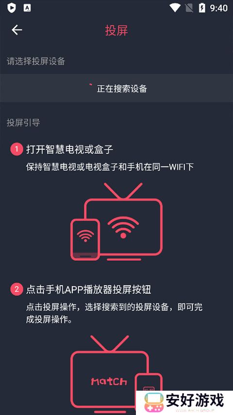 2、接着就会进入动漫播放页面中,在该页面中点击右上角【投屏】,如果用户们没找到投屏按钮时,需要点击屏幕就能显示按钮。最后应用会自动搜索投屏设备进行连接,成功连接后就可以在大屏上看动漫了