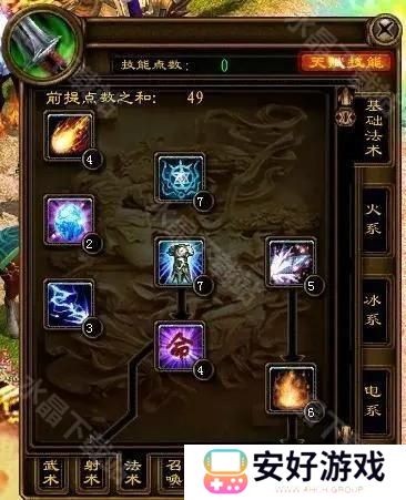 4、冰甲7火强化7可以学到爆裂球。双技能甩大火球和爆裂球。弓学到4点。