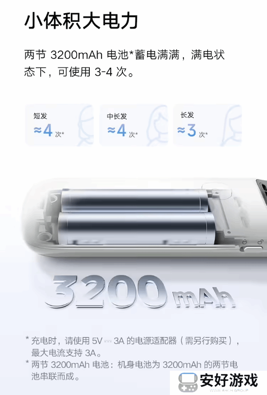 该产品的梳齿上有陶瓷涂层,官方称可有效减少高温对发丝的伤害。电池方面,其配备两节 3200mAh 电池,满电状态下可使用 3-4 次。