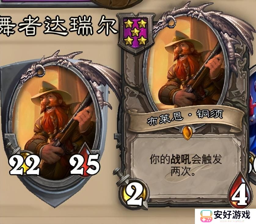 铜须也同样是阵容核心,能够配合酒馆的各种战吼随从拉高上限,尤其是四本的灵魂打击乐手,一次可以发现两张恶魔,还可以配合魔血岩浆快速提升酒馆随从面板,发现两次法术也是巨赚。记得给布莱恩铜须架个嘲讽,防止毒或者火车王。