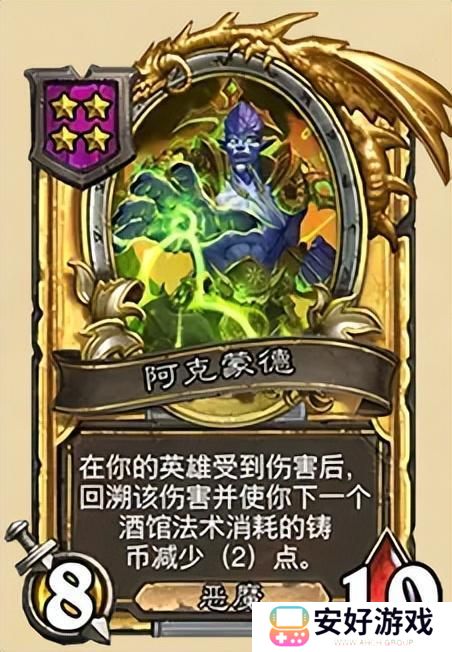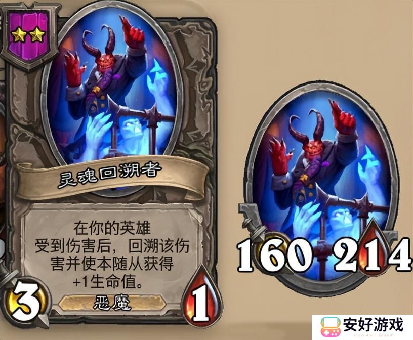 这是一张二本怪,可以让我们无忧的使用恶魔牌,搭配一本愤怒的编织者可以在前期形成场面战力。当然在四本也同样有一只具有回溯效果的恶魔牌阿克蒙德(回溯一次减少下一张酒馆法术牌消耗),可以在中途转型恶魔的时候使用,正常情况还是推荐灵魂回溯者,保证前期战力。