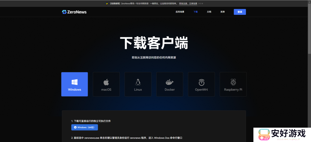 2、先选择一个内网穿透工具,大家可以在度娘桑搜索,例如:ZeroNews零讯内网穿透工具,非常稳定好用,而且还免费。下载地址:https://www.zeronews.cc/download