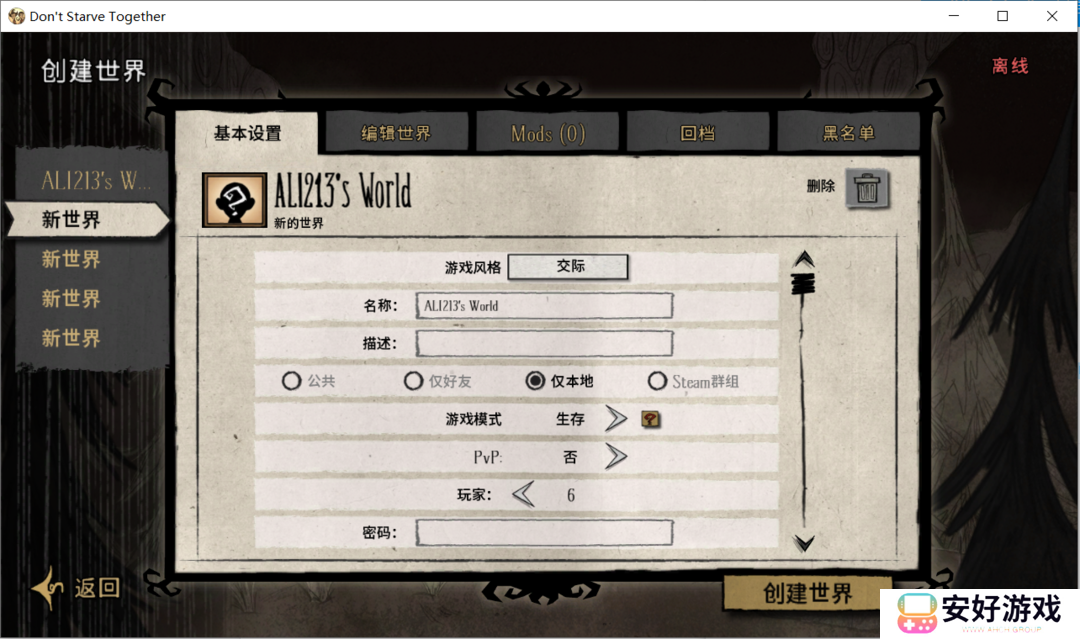 2、游戏风格,可以根据您和您朋友想玩的选择即可;模式选“仅本地”;玩家根据您想要多少人一起玩选择就行,最多默认为6人;密码为空即可。