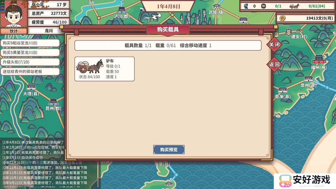 简单玩了一下,个人感觉这款游戏在玩法上的设计还行,基本上,模拟出了古代商队的最要运作模式,不过想要玩得好点的话,需要进行大量的计算和路线规划才行,个人感觉当一款休闲游戏随便玩玩就挺不错的。
