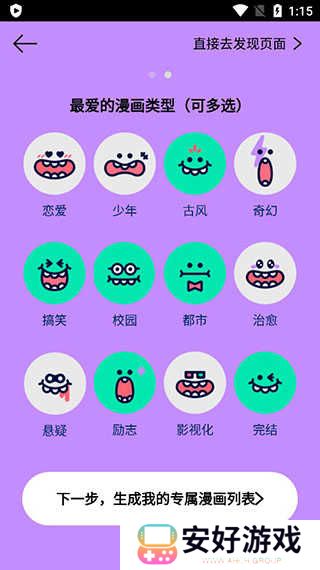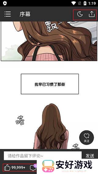 3、任意点击一本漫画,长按漫画,将会出现设置界面,支持留言、点赞、分享等;