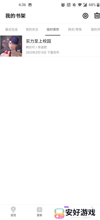 4、最后便能在“我的书架”里面找到临时保存的漫画啦!