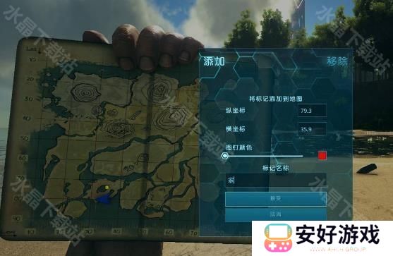 2、等级达到了50级后能制作获得GPS,根据GPS显示的精确坐标,输入到地图标记内,输入名称和颜色点击确定。