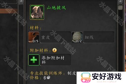 4、准备好重皮*5+细线*2,制皮150技能点以上即可制作。