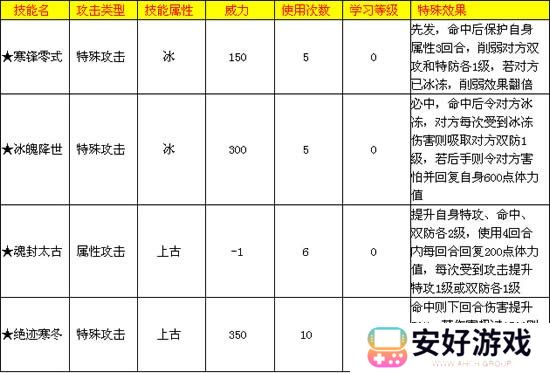 快速加攻双防保护属性受到攻击也同时加特攻。还会令对方冰冻,冰冻翻倍扣对方特防等级。