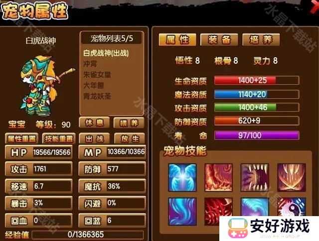3、等级达到50级,潜力极限达到100%可以完成超进化,成为白虎战神。