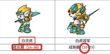 2、16-30级是白灵虎形态,31-75则是白虎将军。