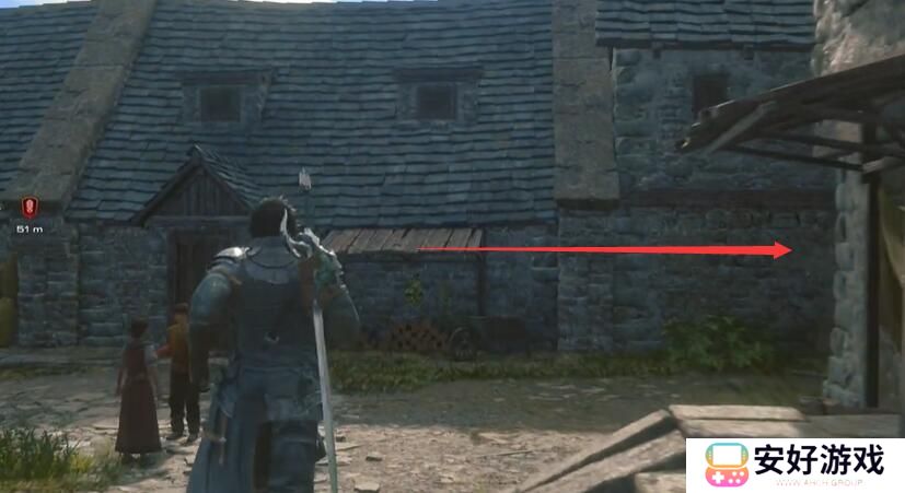 2、然后在村子水井前面向右转就可以找到了。