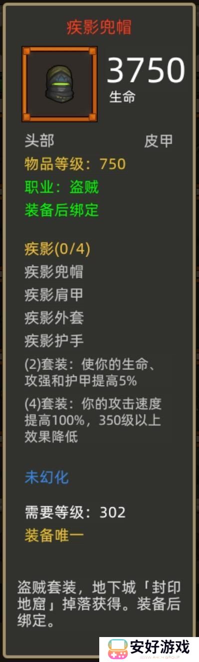 套装推荐T20的通用套装疾影四件套,装备掉落分别是封印地窟和地底巢穴,两件套增加5%的三维面板,四件套纯粹的100%攻速提升。新出的本命套装四件套更适合手动操作,如果想要挂机的话小二还是推荐疾影。