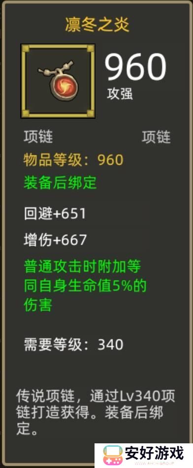 项链推荐340攻强项链凛冬,每次普通攻击能够附带自身5%生命值的伤害,很适合砍砍的狂徒贼。新出的先遣者徽记,如果有的话也可以给狂徒一个,就是获取比较看脸。