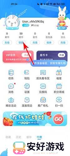 3、进入我的板块之后,可以在头像下方找到萌币点击进行领取;