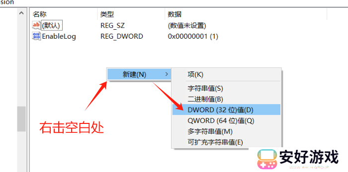 然后把新建的DWORD的名字改为EnableLog,数值修改为1