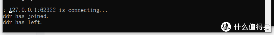 然后可以在刚才的服务器配置以页面,看到“xx has joined",则说明进入服务器成功了