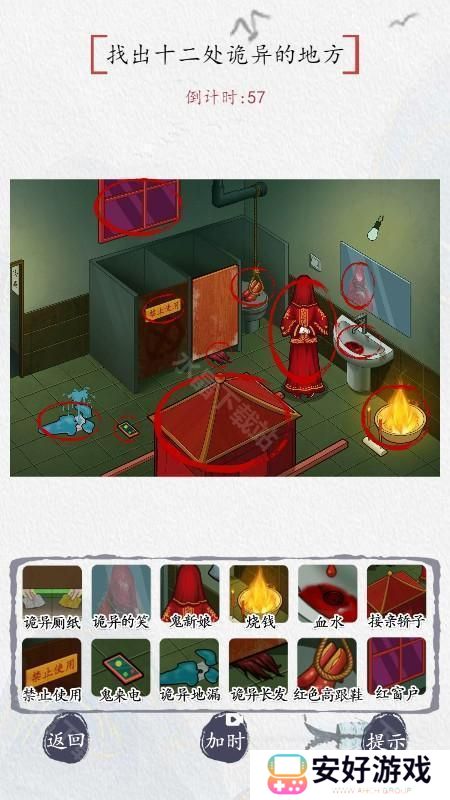1、游戏开始要先点厕所门,有两只手递厕纸进来,点厕纸后进入主场景