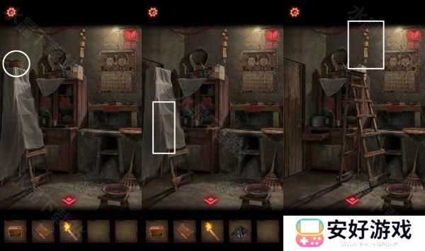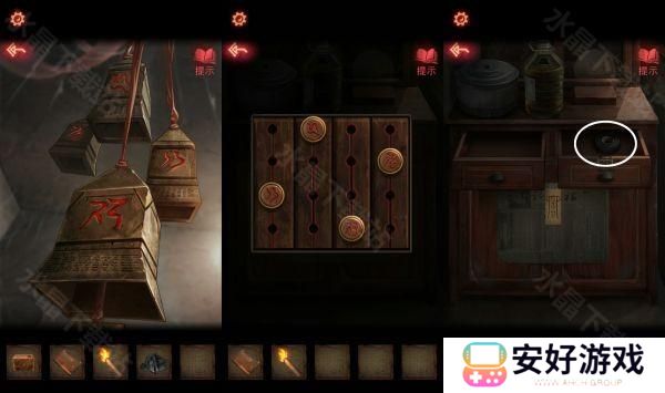 8、根据日记本上面提示,密码:大凶、小凶、大凶、大凶、中凶,打开锁拿到钥匙,钥匙打开门,拿到一个煤油灯。